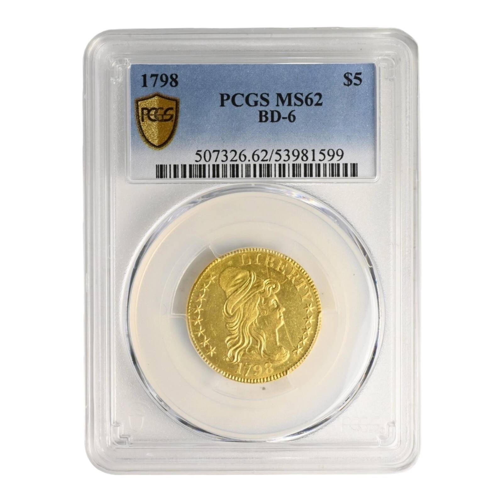 - · FANTASTIC GRADE FOR A COIN THIS OLD – Your Gold 1798 $5 Golod Liberty comes graded by the Professional Coin Grading Service (PCGS) in Uncirculated Mint State-62 (MS62) condition.